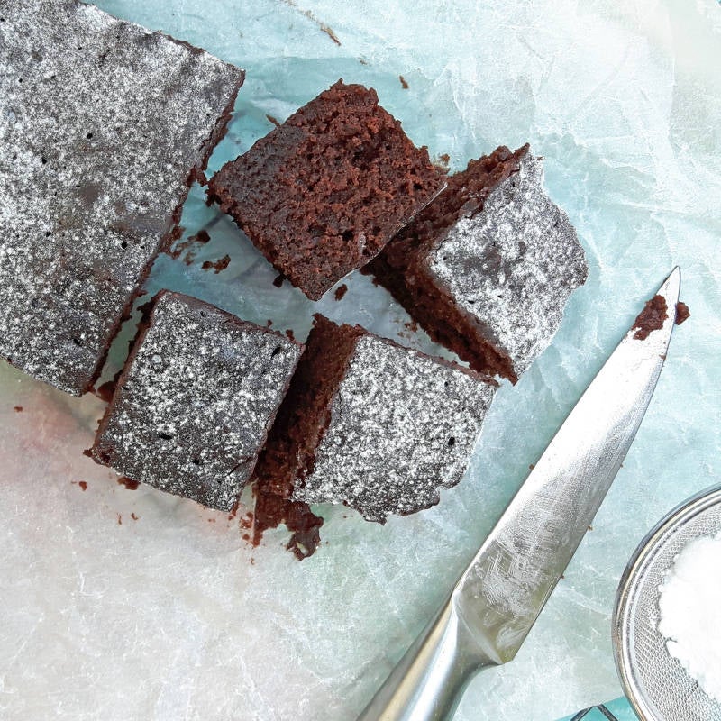 - Laat de brownies afkoelen & haal ze daarna uit de vorm. Bestuif ze met een beetje poedersuiker & snijd ze in vierkantjes. Als je de brownies als dessert met een bolletje ijs of slagroom serveert is het trouwens lekker als ze nog warm zijn!