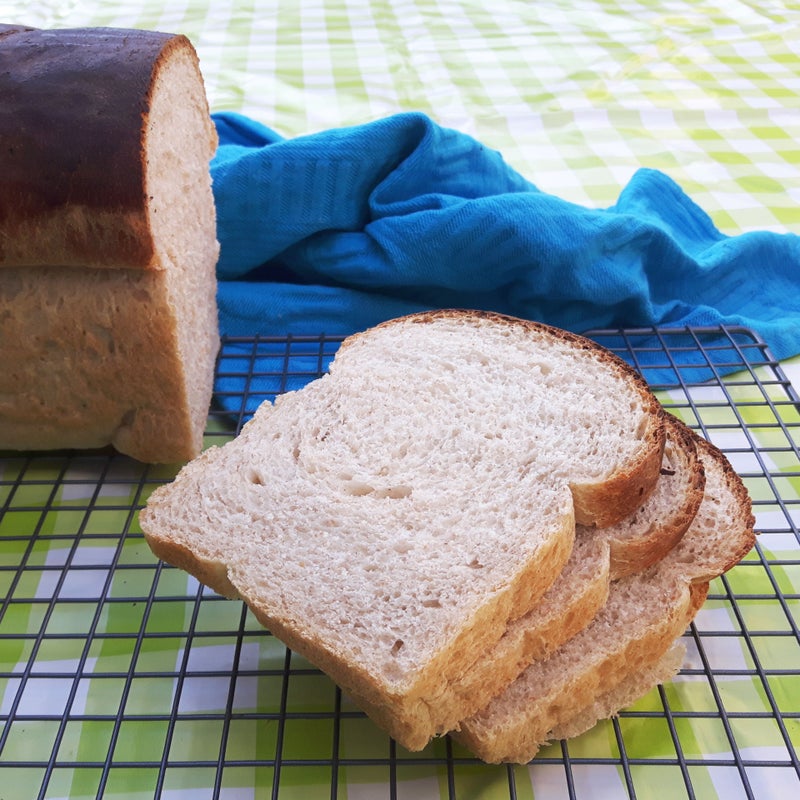 verlaag daarna de oventemperatuur naar 200 graden en bak nog 10-20 minuten. Controleer wel even tussentijds; misschien duurt het in jouw oven minder lang voor het brood gaar is. Check ook regelmatig of de bovenkant van het brood niet te donker kleurt; leg er desnoods een stuk aluminiumfolie over heen. - Het brood is klaar als het hol klinkt als je op de onderkant klopt of als de kern- temperatuur 95 graden is. Haal het brood uit het bakblik en laat afkoelen op een rooster.