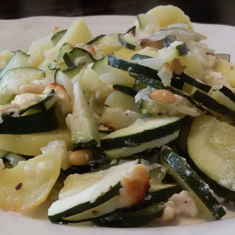 Dit is zo'n gerecht waar ik me de hele dag al op kan verheugen. De combinatie van courgette met geitenkaas, pijnboompitten en aardappelen... hmm! En het is ook nog eens heel eenvoudig om te maken!