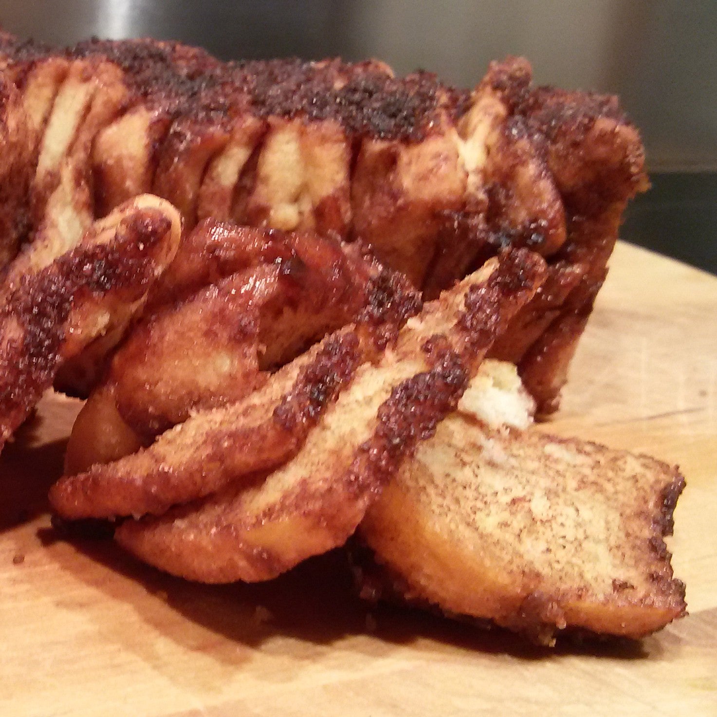 Dit kaneelplukbrood is door de basterdsuiker en kaneel lekker zoet. Ons huis rook heerlijk toen het uit de oven kwam! Het brood is het lekkerst als het nog een beetje warm is. Daarna wordt het al snel wat droog. Niet te lang laten staan dus!