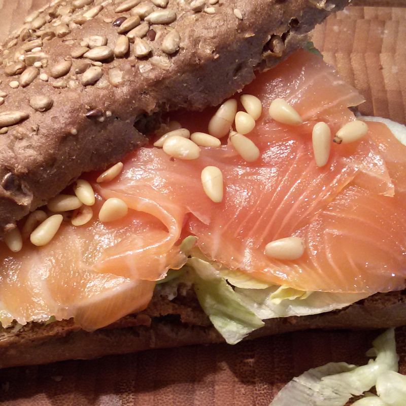 Vandaag geen zelf gebakken brood, maar een zelf belegd broodje: een meergranen triangel met roomkaas en zalm. Om het weekend goed mee te beginnen :-)