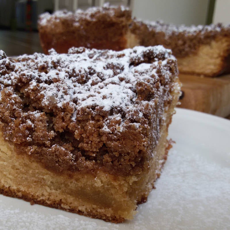 De kruimels op een kruimelvlaai of appelkruimeltaart zijn het lekkerste onderdeel van de taart. Toch? Op deze kwarkkruimelcake maakte ik dus een lekker dikke laag kruimels. Yum!
