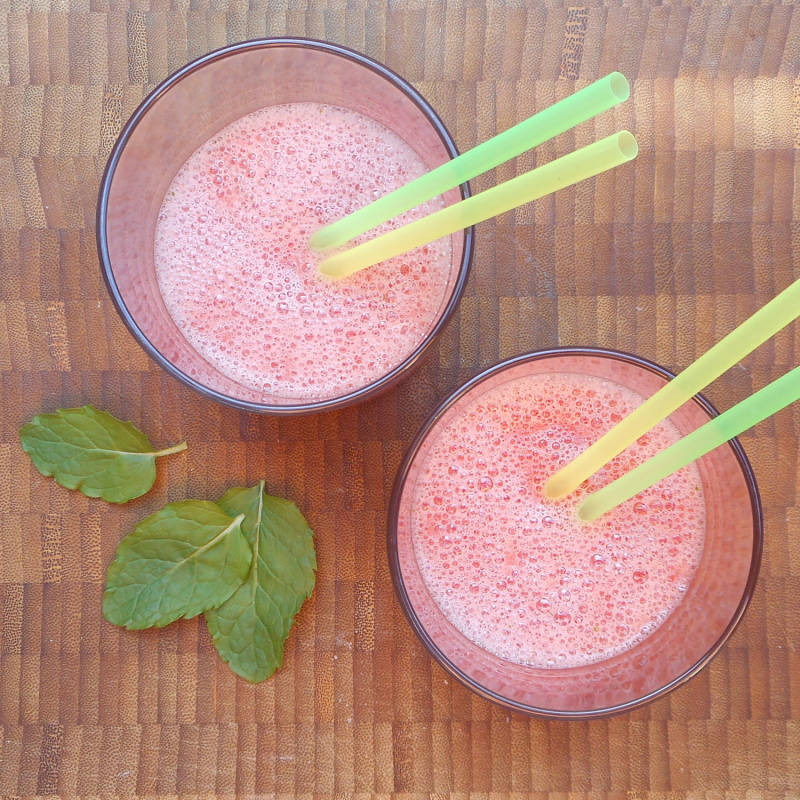 Een lekker zomers & heel gezond drankje: een watermeloen smoothie met munt. Heerlijk op een warme zomerdag!