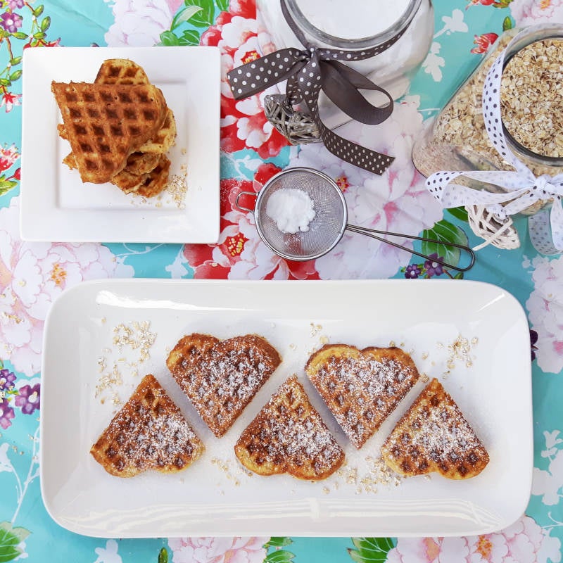 HAVERMOUT WAFELS! Dat is nog eens lekker ontbijten, met zulke goudbruine, warme wafels. Met een beetje poedersuiker er over, of honing, een plak kaas of vers fruit...