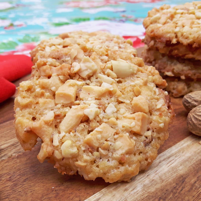 Zo'n vermoeden had ik al, dat ze hier thuis wel in de smaak zouden vallen. Ik bedoel maar: lekker knapperige koeken met pinda's en grote brokken witte chocolade er in, dat kan toch nooit verkeerd zijn? Ik had dus expres maar 8 koeken gebakken: precies genoeg voor bij een bakje koffie of thee op de vrijdagmiddag. Dan konden we er in elk geval niet van dóór blijven eten, haha!