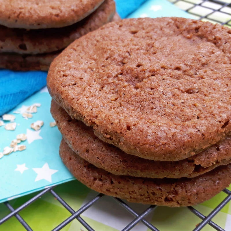 - Haal de bakplaat uit de oven en laat de koekjes even afkoelen op de plaat. Ze zijn nu nog heel erg zacht! Schuif de koekjes na een paar minuten met bakpapier en al op een rooster en laat ze daar helemaal afkoelen en uitharden. Het worden stevige, knapperige koekjes!