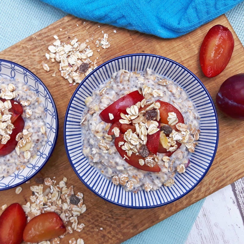 - Strooi er de volgende ochtend de extra pruim (zonder pit & in stukjes) en een beetje extra muesli over heen.