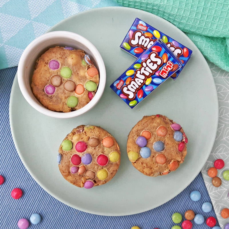 Koekjes bakken kan ook gewoon in de magnetron. Lekker makkelijk, ben je in een paar minuten klaar! :-D Ik maakte vijf kleine koekjes met smarties. En dat is heel handig, dat het er maar vijf zijn... dan kun je je er ook niet misselijk aan eten, haha!