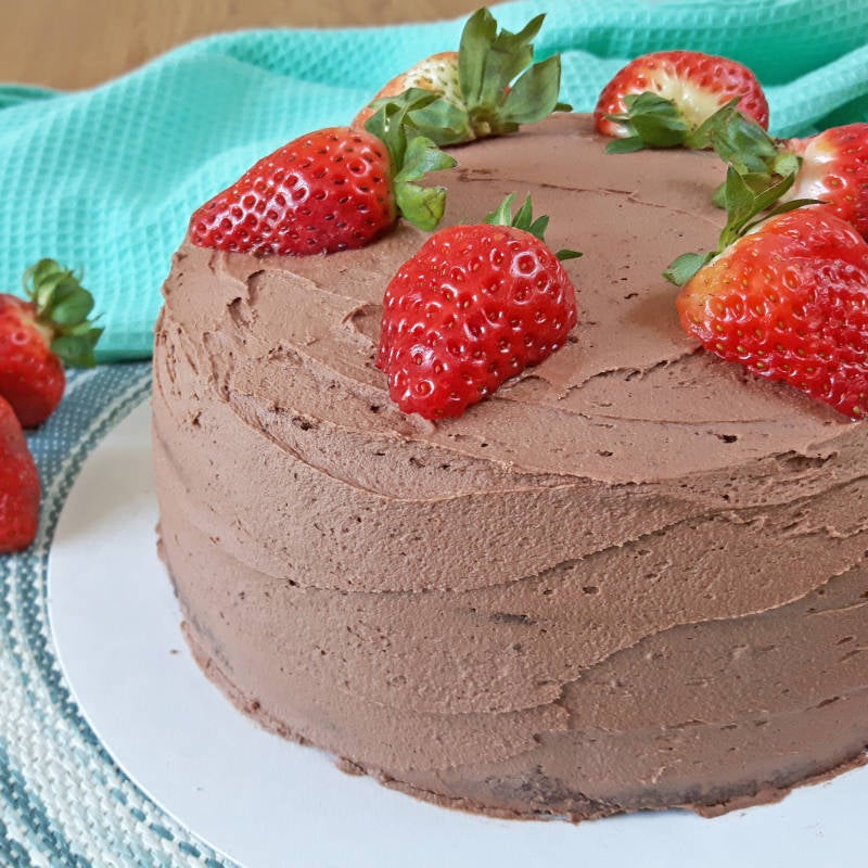 Chocoladetaart! <3 Met lekker veel laagjes: tussen de drie chocoladecakes zit eerst een laag jam en daarna zachte aardbeiencrème. Op de buitenkant van de taart zit stevige chocolade botercrème. Ik ben zelf trouwens niet zo'n liefhebber van chocoladegebak, maar déze taart vind ik ook erg lekker!