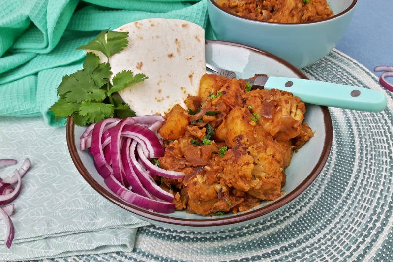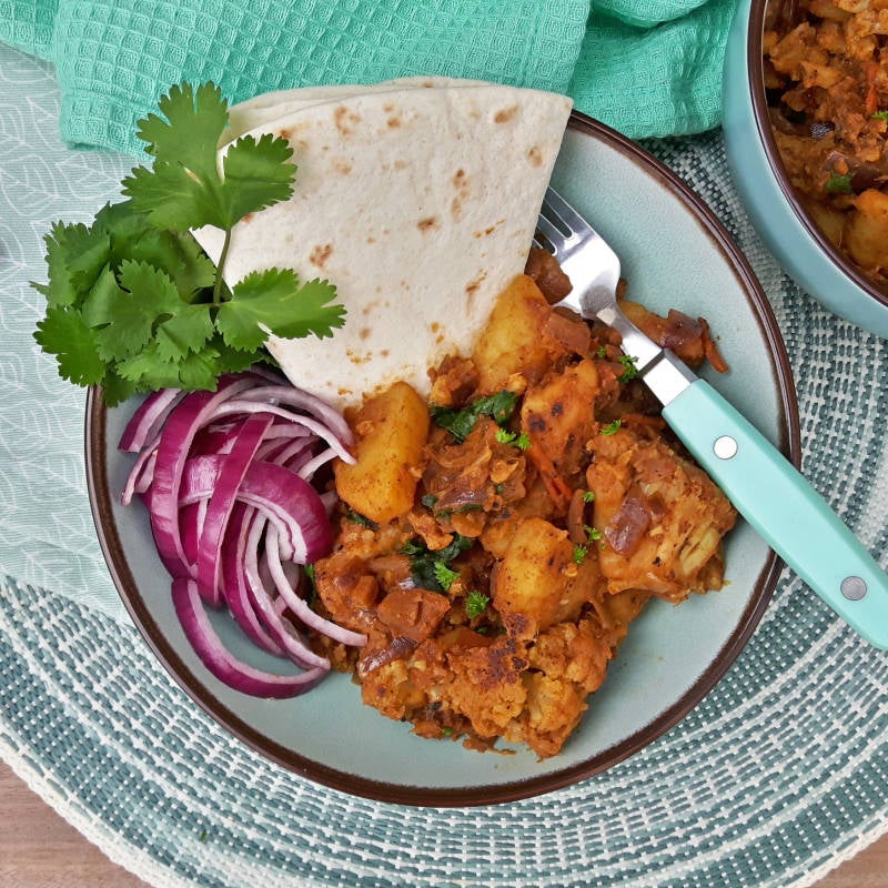 Aluu gobi is zó lekker! Ik at dit gekruide Indiase gerecht met aardappels en bloemkool een poosje terug, toen we uit eten waren. Dat smaakte zo goed, dat ik het thuis ook wilde maken. En die missie is geslaagd hoor!