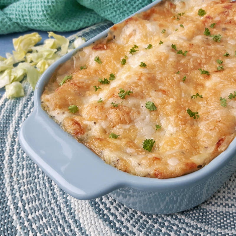 Vandaag geen lasagne met een rode saus, maar met een witte alfredo saus! Die saus maak je heel simpel zelf met wat boter, room en kaas. En daarna hoef je alleen nog maar de lagen lasagne, saus, groente & vlees te stapelen en in de oven te bakken... Lekker!