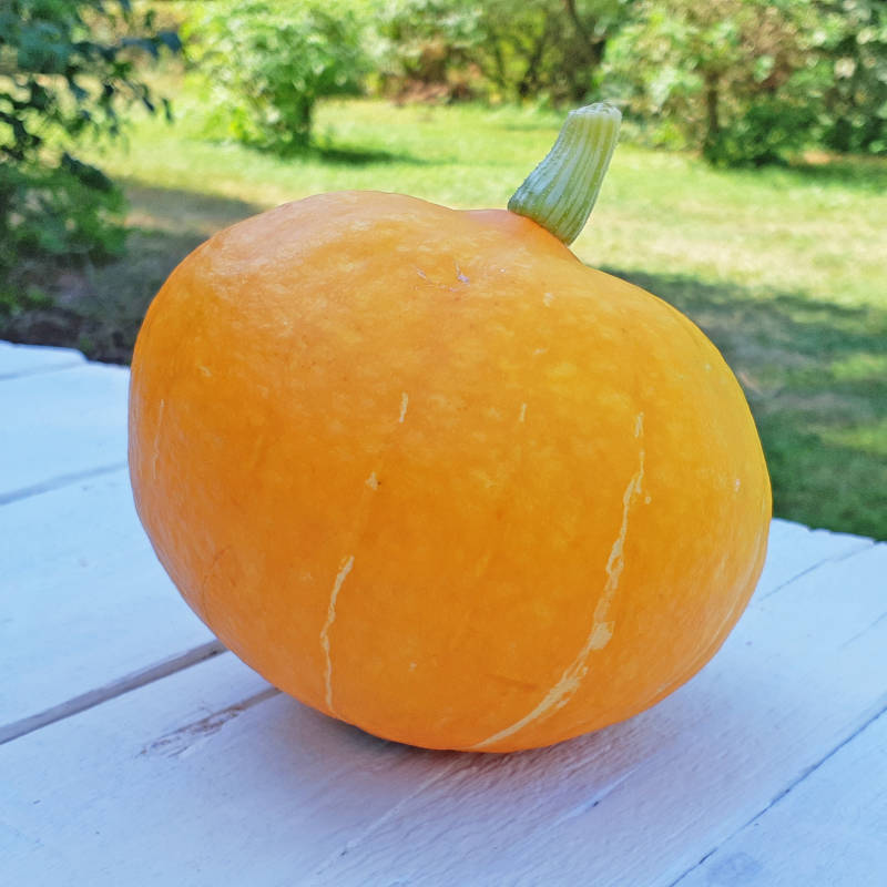 Dat had ik thuis niet bedacht om te gaan doen, maar ik kreeg een hele grote oranje pompoen. Klein puntje: ik ben de enige van ons gezin die pompoen lust. Thuis maak ik er regelmatig lekkere ovenschotels mee en vries ik de blokjes pompoen die ik over houd in, maar dat gaat wat lastig op de camping. Dus ik besloot om er dan maar jam mee te maken. Dat blijft daarna lekker lang goed, hartstikke handig. En lekker!