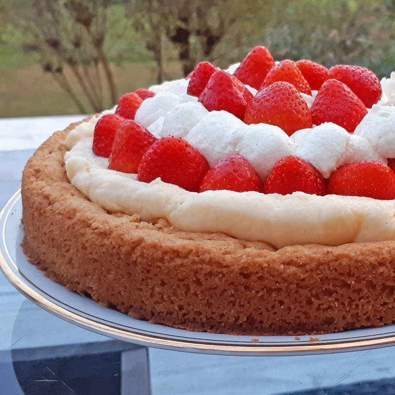 Op de laatste dag van onze vakantie bakte ik deze ronde aardbeienslof, in een Slowaakse keuken! De beide campingbeheerders wilden 'm namelijk heel graag eens proeven. Dus bakken maar! Met hier en daar een beetje improviseren, omdat we niet alle ingrediënten konden vinden.