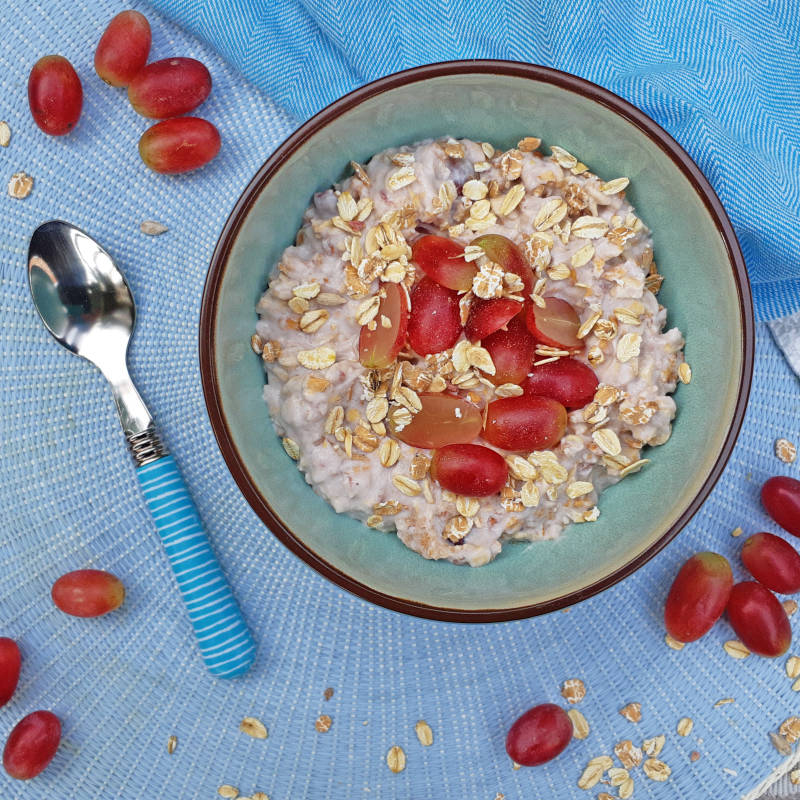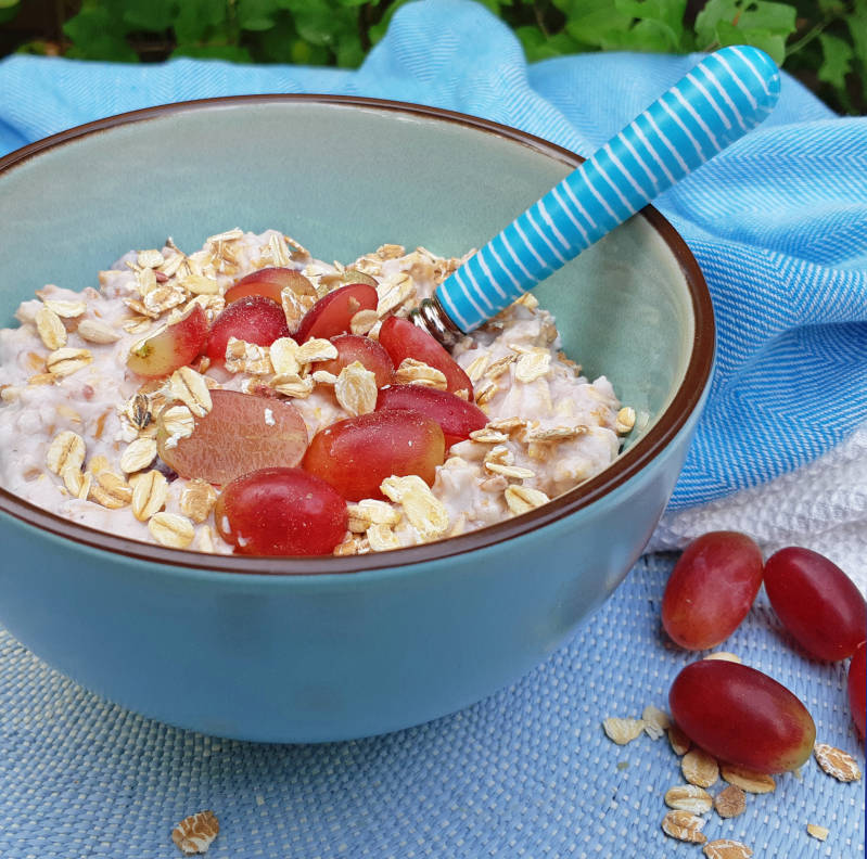 - Strooi er de volgende ochtend de extra druiven en een beetje extra muesli over heen.