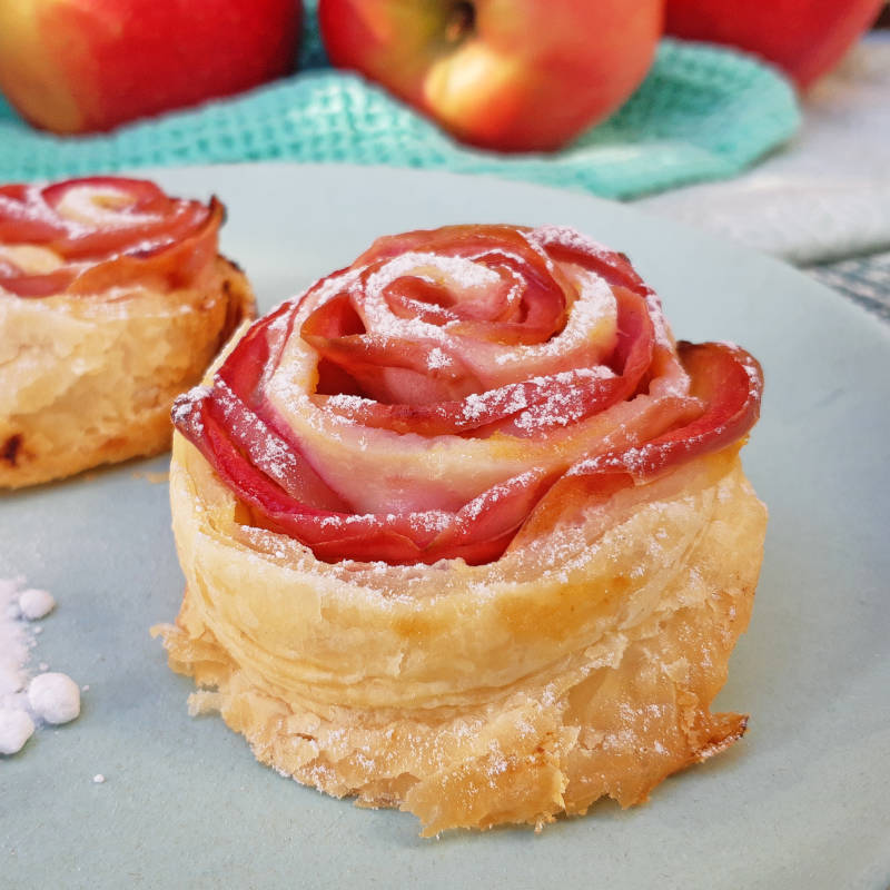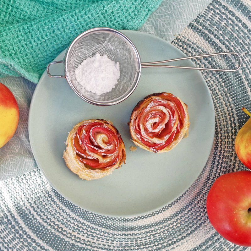 Maar je kunt ook gewoon een ander soort appel gebruiken, hoor. Zolang ze maar een mooie rode schil hebben. Handig om te weten: ik gebruikte een muffinvorm, maar mijn opgerolde roosjes waren kleiner dan de bakvorm. Daardoor werden ze bijna allemaal scheef tijdens het bakken. Je kunt dus het beste óf iets kleinere bakvormpjes gebruiken, of een wat dikker roosje maken. Dan passen ze goed in de vorm en bakken ze niet scheef.