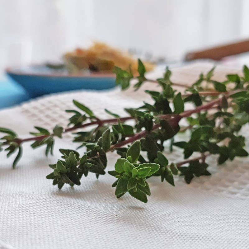 - 1-2 takjes verse tijm, de blaadjes van de takjes gerist