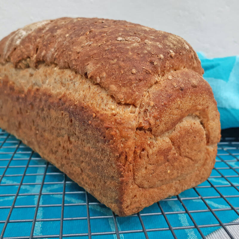 Met een zak oergranenmeel dat ik bij de molen kocht bakte ik dit lekker stevige brood. Wij aten 'm na een flinke strandwandeling, met een lik boter en een paar plakken kaas er op en een kop tomatensoep er bij. Lekker!