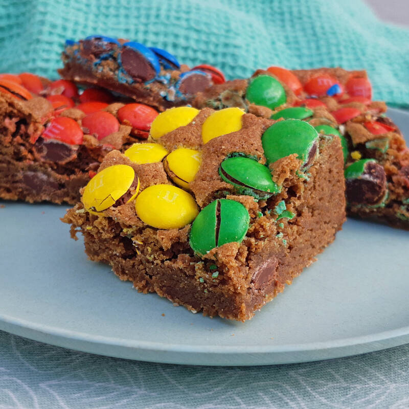 Hè, wat vervelend nou... we hebben nog een paar stukjes van de M&M cookie taart over! :-)