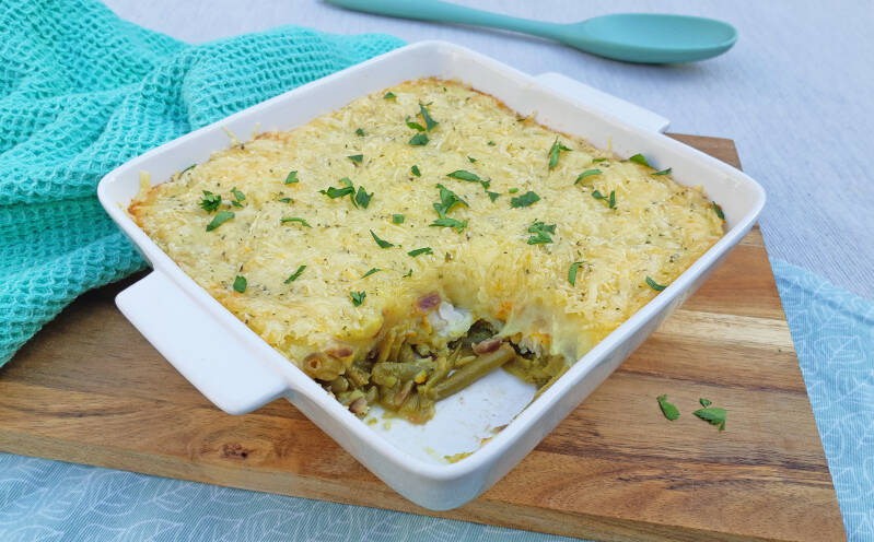 Tijd voor vis! Dat had hier al heel lang niet op tafel gestaan, dus dat mocht wel weer eens. Ik maakte met een pangasiusfilet deze hele eenvoudige aardappelschotel met kerrie, sperziebonen & geraspte kaas.