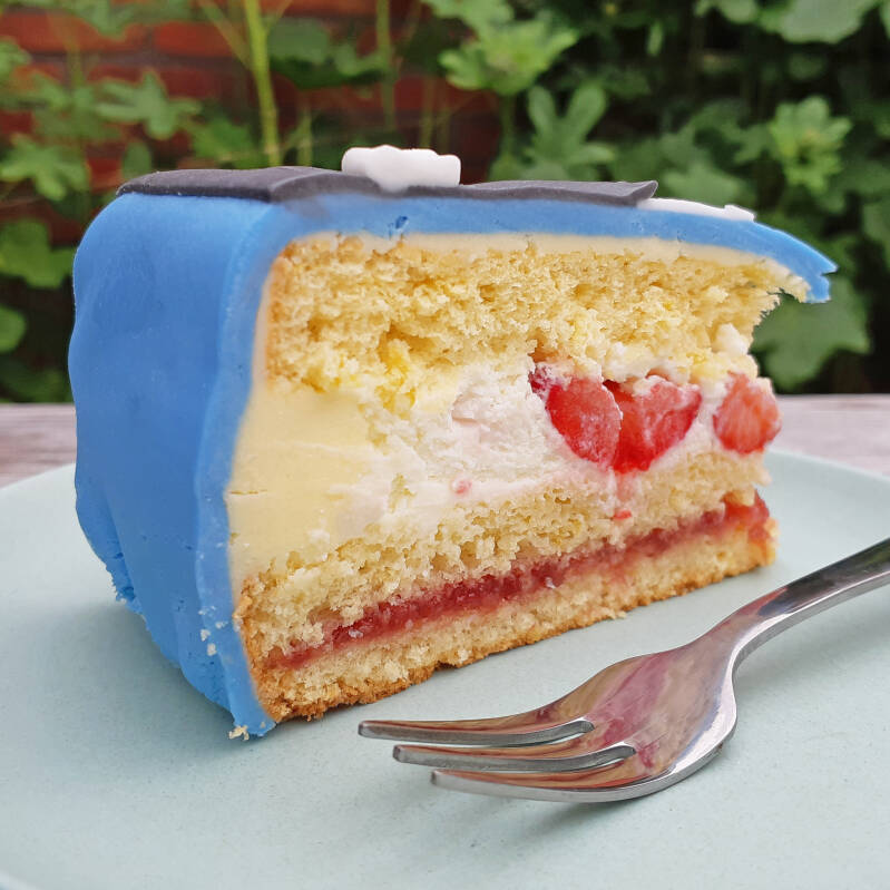 Het uitrollen van het fondant was gewoon een dra-ma. En toen de lap fondant eindelijk groot genoeg was, was 'ie uiteraard aan het werkblad vastgeplakt (ondanks al mijn voorzorgsmaatregelen om dat te voorkomen). Ik heb echt enorm staan mopperen op dat stomme fondant, en het is echt mijn lelijkste taart ooit geworden, haha! Wander vond dat overigens totaal niet, dus dat scheelt weer. Maar ik ben natuurlijk wel een beetje kritisch ;-)