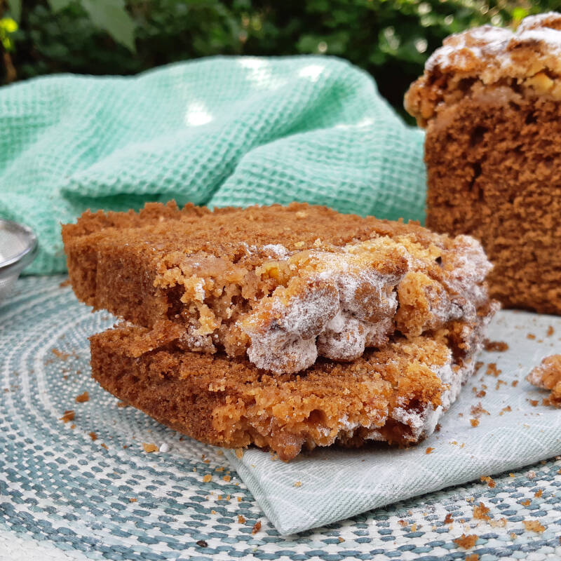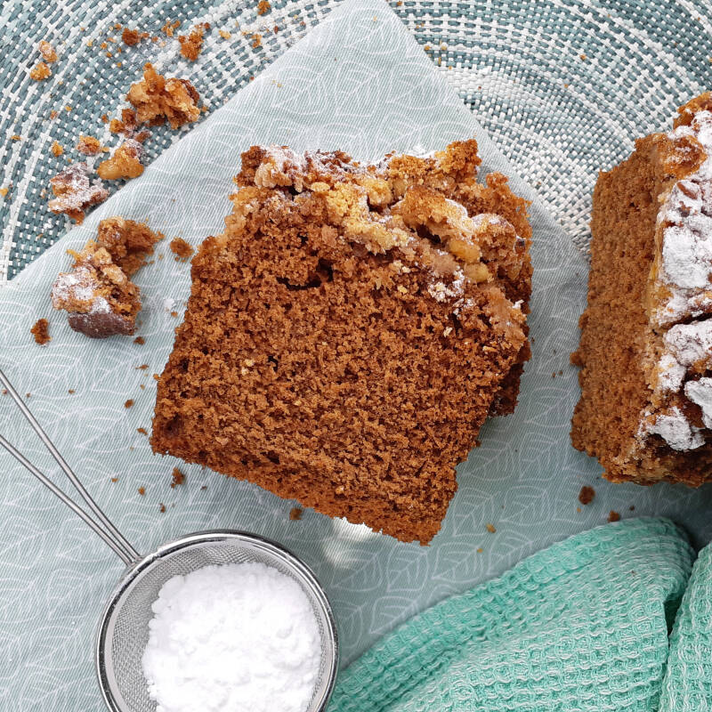 Je proeft de koffie trouwens wel terug in de cake, dus als je absoluut geen koffiedrinker bent vindt je deze cake misschien ook wel niet lekker. Maar aan de andere kant: wie kan nu een plakje cake met zo'n heerlijke dikke laag kruimels er boven op laten staan? Ik niet, hoor!
