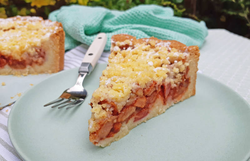 In onze tuin hebben we een heel klein Redlove appelboompje staan. De appeltjes daarvan hebben hebben rozerood vruchtvlees. Dit jaar zaten er maar liefst 53 appels aan de boom en daarmee bakte ik 2 appelkruimeltaarten. En die werden van binnen ook mooi rood!