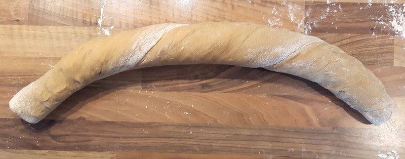 - Bestuif je werkblad met een beetje bloem. Leg het deeg er op en kneed het een paar keer. Leg het daarna in een ingevette kom, dek die af met plastic en laat het deeg 1 uur rijzen bij kamertemperatuur.