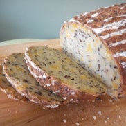 Als je je trouwens afvraagt wat die gele stukken in het brood zijn: in het maïs meel dat ik bij de molenaar kocht, zaten grote gele bollen gepofte maïs. En die zie je dus in het brood terug als gele stukjes. Ze zijn gewoon zacht hoor, er zit niet iets hards in het brood.