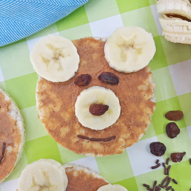 - Leg een rozijn op het middelste schijfje banaan. Gebruik de andere rozijntjes als oogjes.