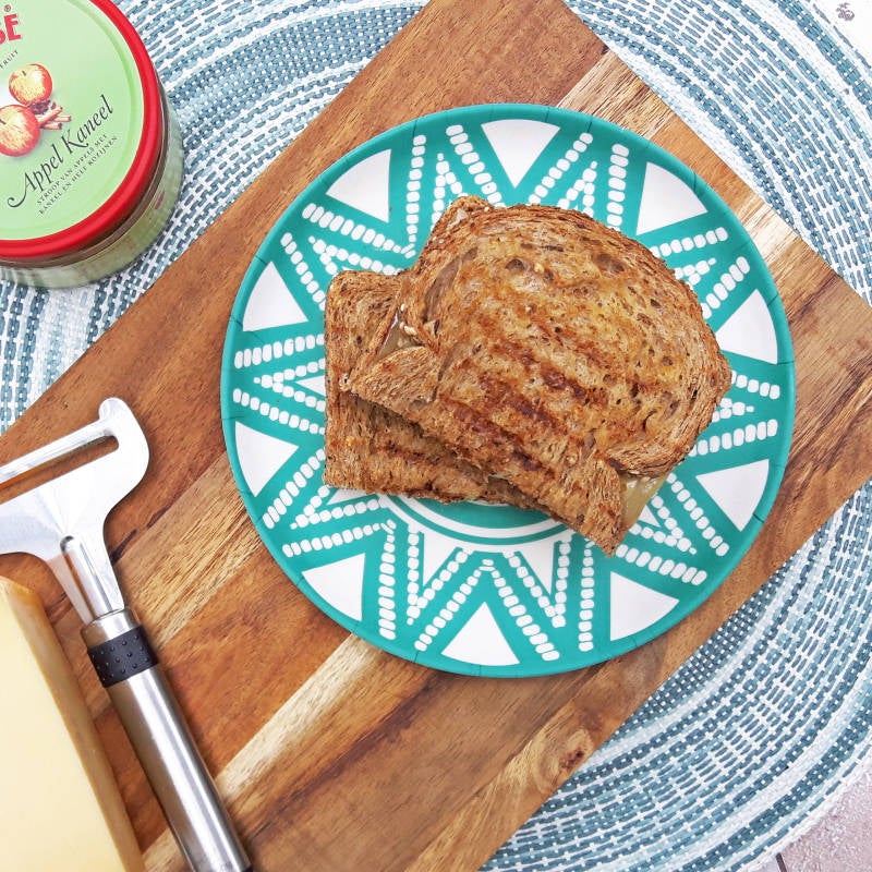 Ik bak voor de mannen thuis regelmatig ham-kaas tosti's, maar voor mezelf maak ik af & toe eentje met kaas & appelstroop. Misschien vind je dat een vreemde combinatie voor een tosti... maar echt, je moet het eens proberen, hoor! Kaas & appel smaakt zo lekker bij elkaar. Net als bij deze sandwich met kaas & appel. Die moet je ook echt eens proberen.