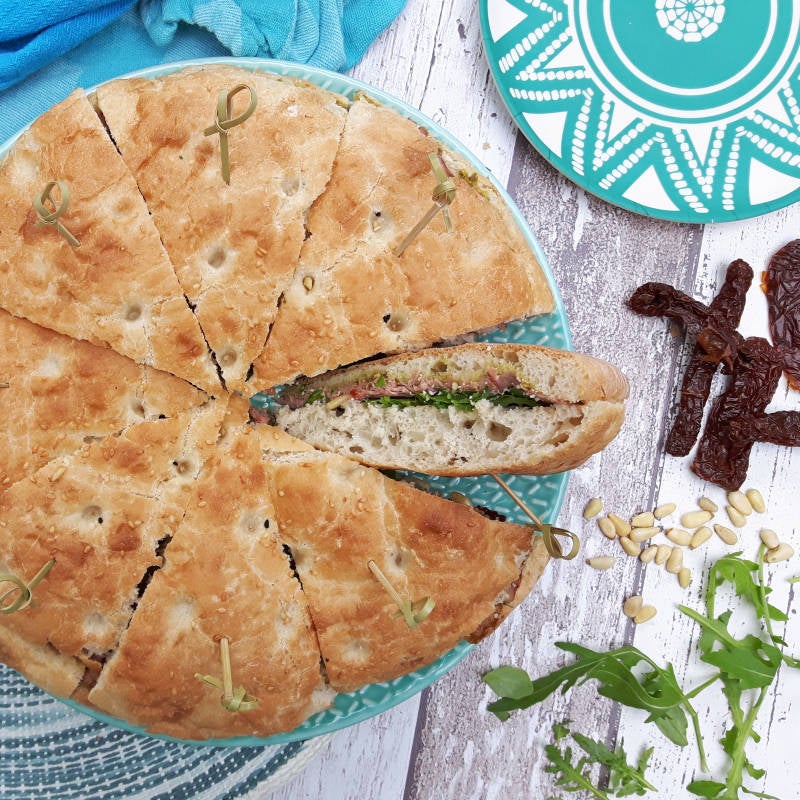 Wij houden van lekker belegde broodjes! Zoals dit Turkse brood met pesto, rosbief, zongedroogde tomaat, pijnboompitjes & rucola. Lekker om zelf mee te lunchen, maar ook ideaal om op tafel te zetten als je heel veel mensen te eten krijgt!
