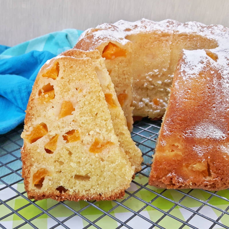 Ik was aan de beurt om iets lekkers bij de koffie mee te nemen bij een cursus die ik volg. En dus bakte ik deze perzik-vanille tulband cake. Daar kun je lekker veel stukjes uit snijden, dus dan heb je altijd genoeg voor iedereen!