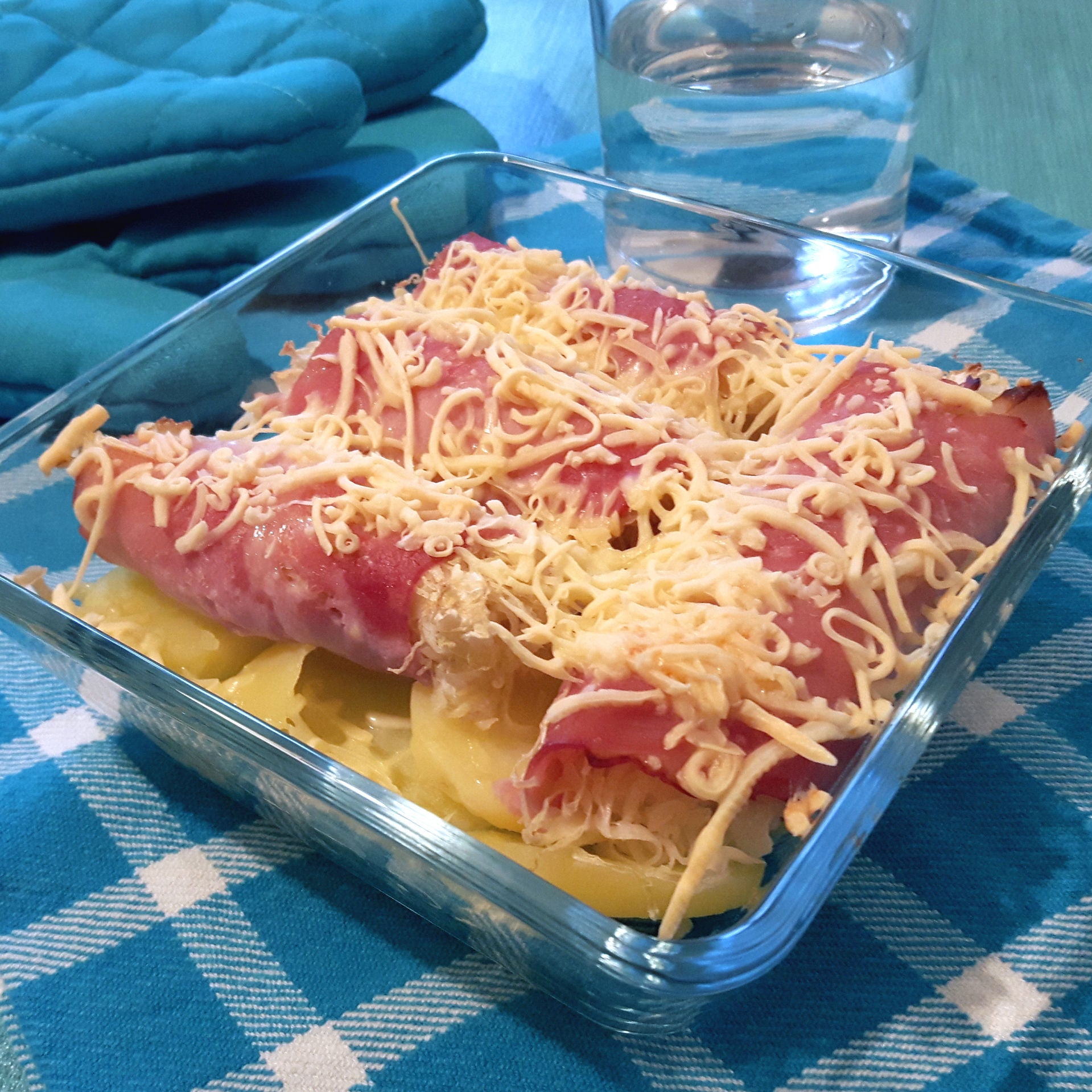 Aardappelschotel met pangasius, sperziebonen & kerrie