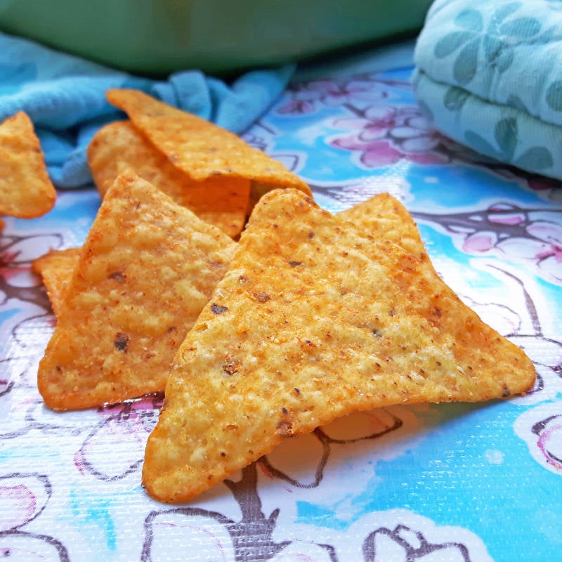 - Zet de schotel in de oven en bak in 15-20 minuten, totdat de kaas is gesmolten. Houd tijdens het bakken de schotel wel in de gaten, want je wilt natuurlijk niet dat de chips verbrandt :-).