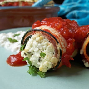 - Zet de schotel in de oven en bak de courgetterolletjes in 30 minuten gaar.
