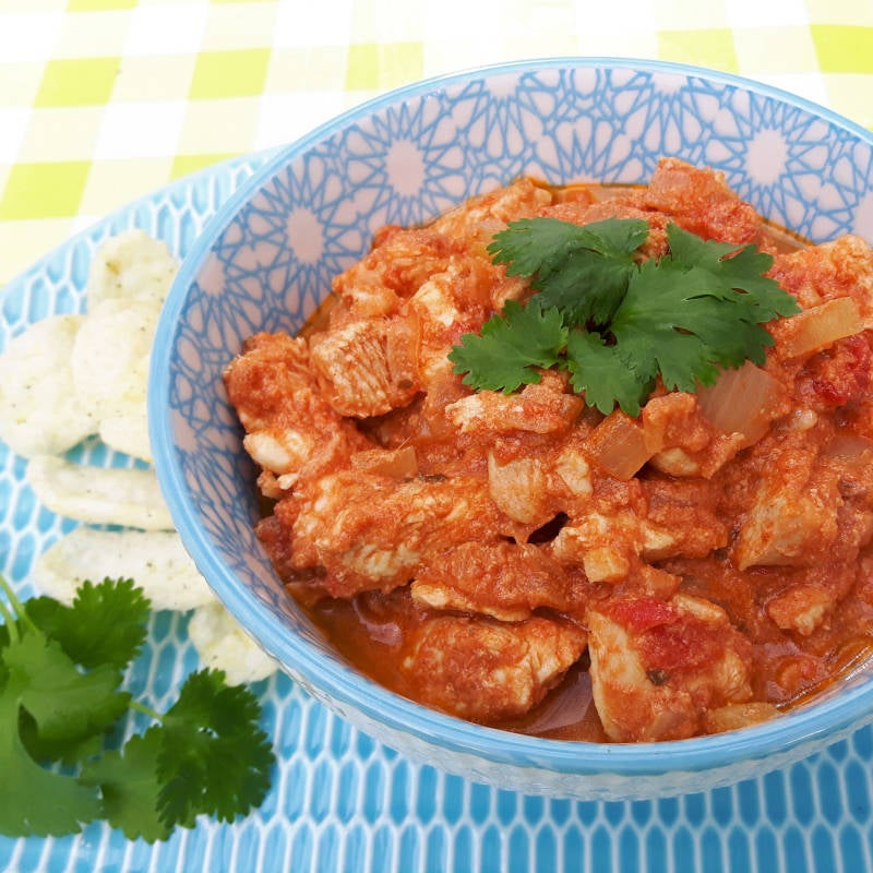 Dit is kip tikka masala: in yoghurt & kruiden gemarineerde kipfilet, dat je daarna bakt met nog veel meer kruiden & tomatensaus. Lekker met rijst en een stukje naan brood!