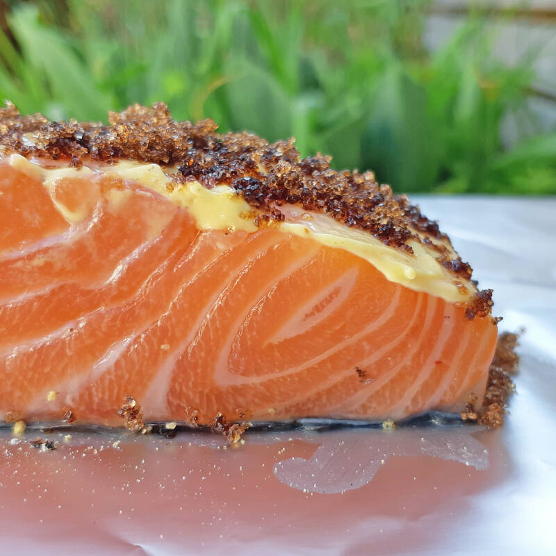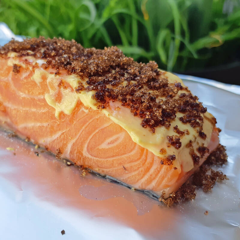 zalm met mosterdsaus en basterdsuiker (barbecue & skottelbraai)