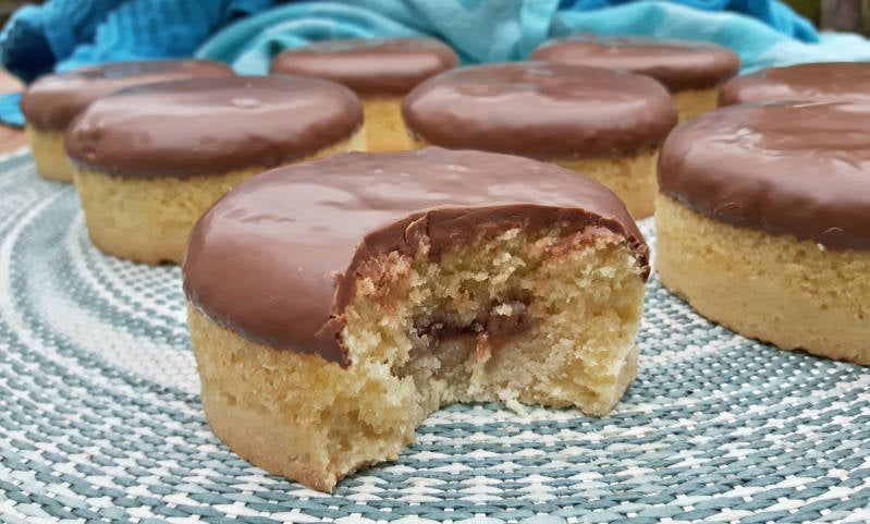 Gangmakers stonden al een tijdje op mijn lijstje om eens te gaan bakken. Ik vroeg me alleen af hoe je de cakejes bakt mét jam er in. Zakt die niet naar beneden? En hoe maak je nou van die rechte koeken, zonder dat het beslag er aan de onderkant van de bakring weer uitloopt?