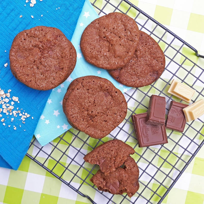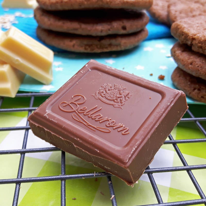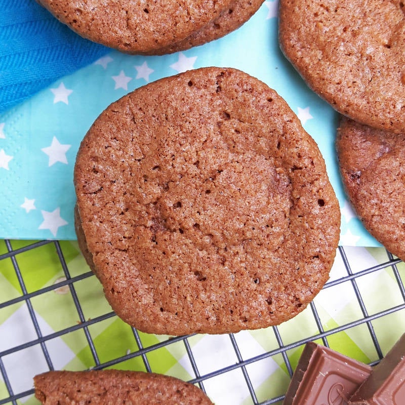 Als je de koekjes uit de oven haalt zijn ze trouwens nog helemaal zacht. Je moet ze even de tijd geven om af te koelen en dan worden ze écht lekker knapperig. Niet alleen de randjes (zoals van die Amerikaanse chocolate chip koekjes, die van binnen vrij zacht blijven), maar het hele koekje wordt stevig. Wij houden daar wel van. Wat vindt jij het lekkerst, een zacht of een knapperig koekje?
