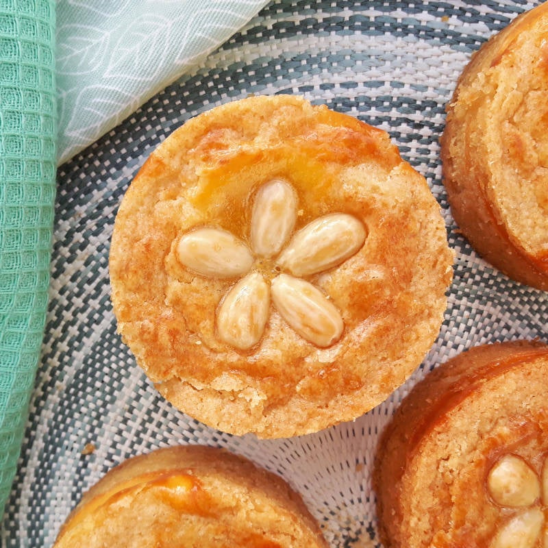 - Vul elke koek met de amandelspijs, tot aan de bovenkant van de opstaande deegrand. Je hebt misschien niet alle spijs nodig.