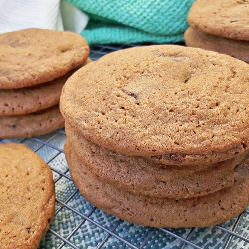 Gelukkig lag er nog één rol met Rolo's in onze voorraadkast. Precies genoeg om een stapel van deze lekker grote Rolo chocolate chip koeken te maken! En daar had ik nou juist zo'n zin in.