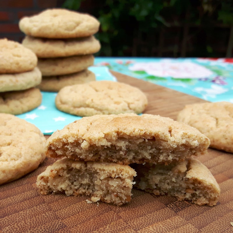 Let op, de koekjes zijn nog heel zacht als ze uit de oven komen. Als ze afkoelen worden ze steviger (maar het blijven vrij zachte koekjes, ze worden niet helemaal knapperig).