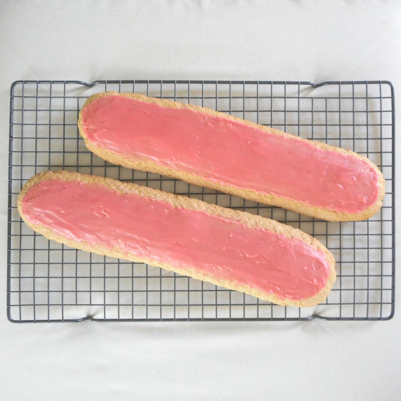 - Leg de twee sûkerlatten op de bakplaat en bak ze in ongeveer 20 minuten licht bruin. Laat ze daarna afkoelen op een rooster.