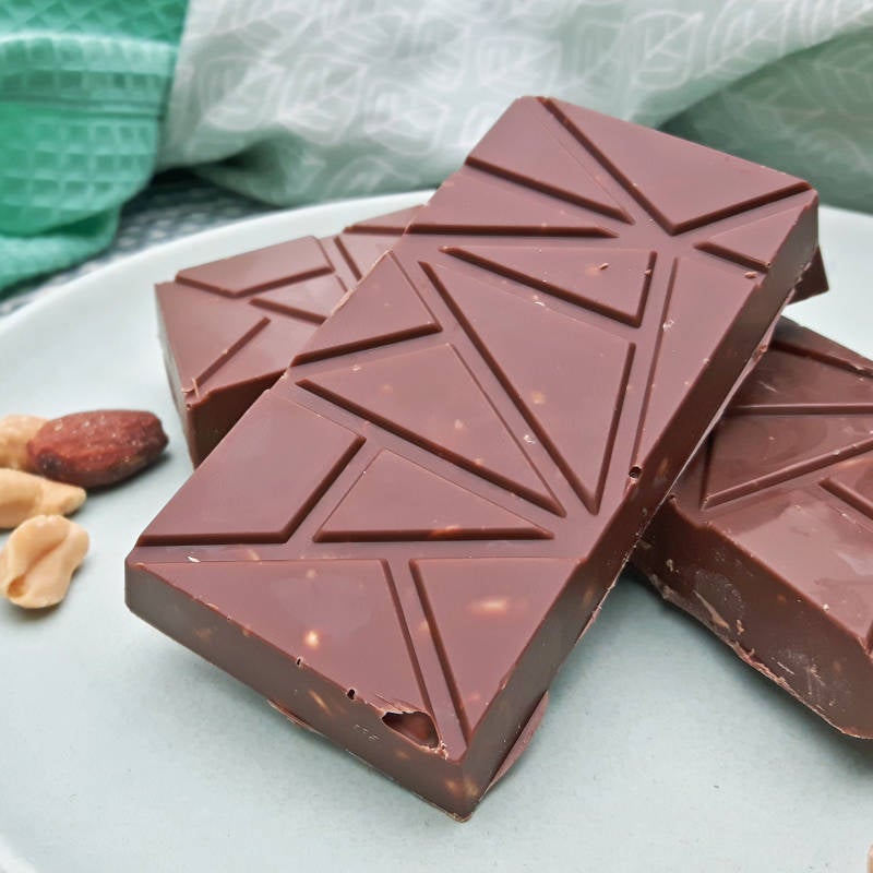 Ik heb een nieuw 'speeltje': mallen om zelf chocoladerepen mee te maken! Die vond ik veel te leuk om te laten liggen, dus ik heb ze gewoon gekocht. Klein cadeautje voor mezelf. En ik moest ze natuurlijk meteen even testen, dus ik maakte deze melkchocoladerepen met noten. Lekker!!