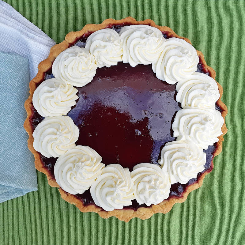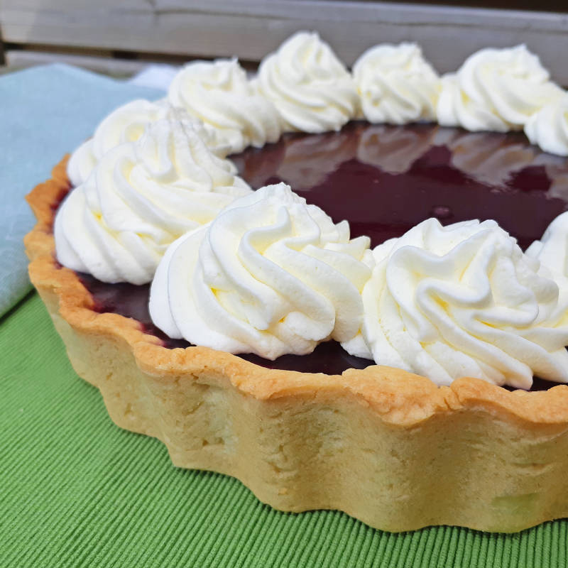 - Versier de taart als hij helemaal stevig is met slagroom en evt. vers fruit.