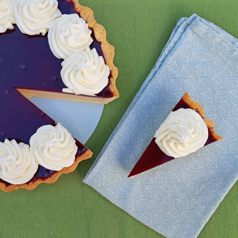 Voor de toplaag gebruikte ik zelfgemaakte bramenjam, maar je kunt er ook een andere soort jam voor gebruiken.