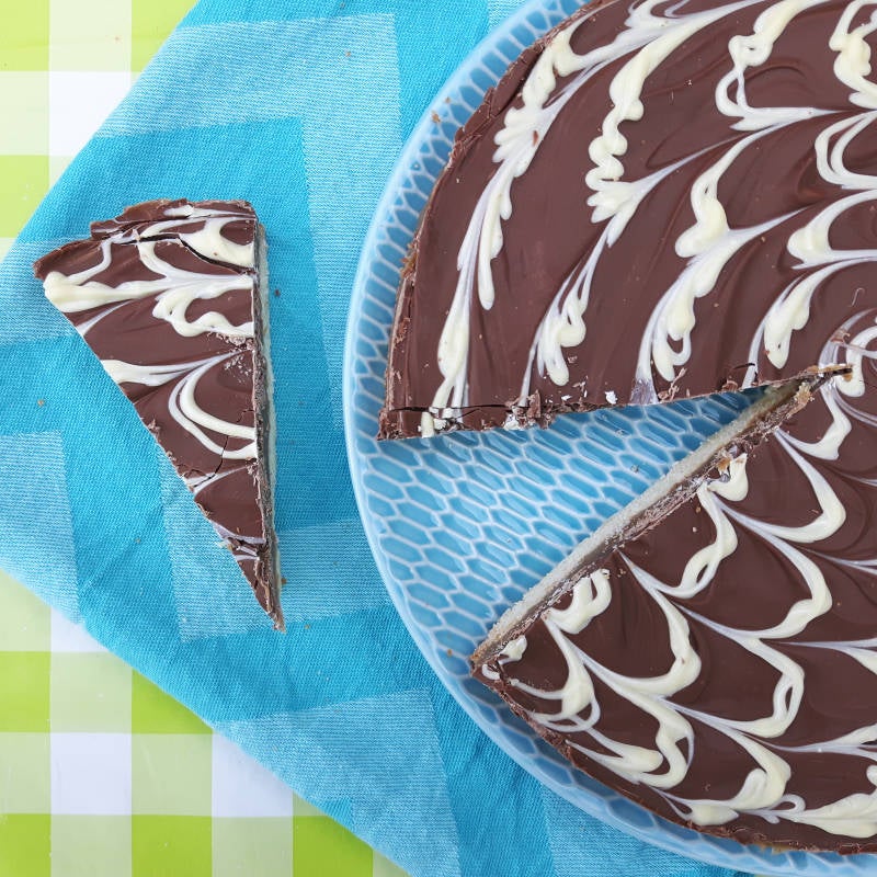 - Zet de taart in de koelkast, zodat de chocolade helemaal kan uitharden.