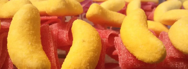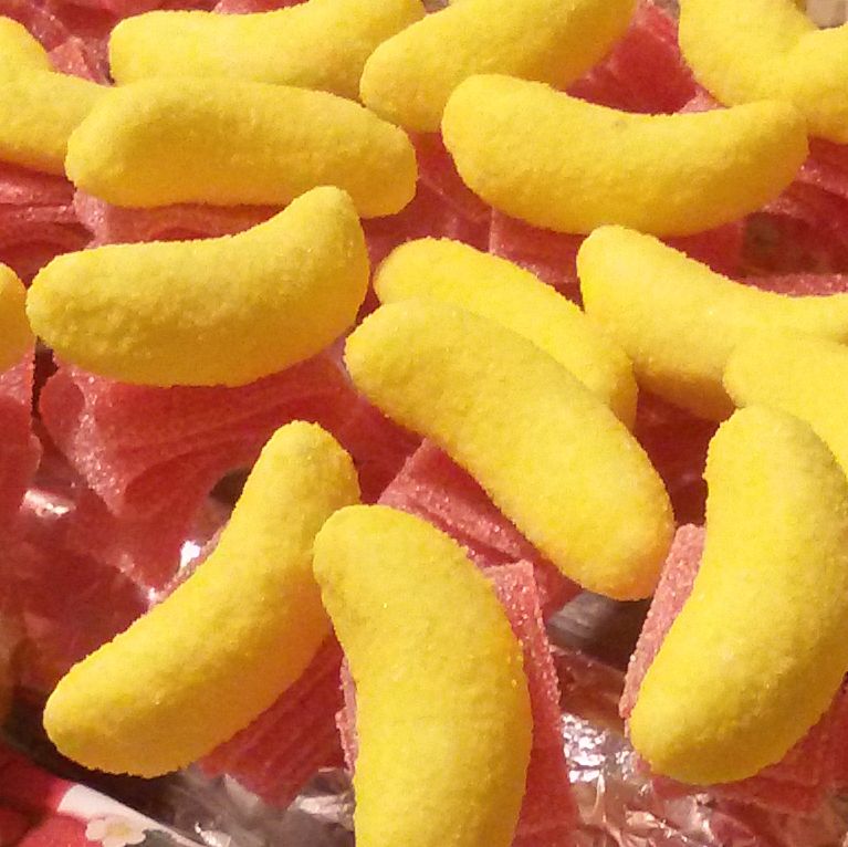 Afgelopen vrijdag was onze middelste zoon jarig & dus moest er getrakteerd worden! Vorig jaar had ik veel werk van een gezonde traktatie gemaakt... en daar was hij totaal niet blij mee. Dit jaar dus (tot zijn grote vreugde) een simpele traktatie met zure matten & banaantjes.