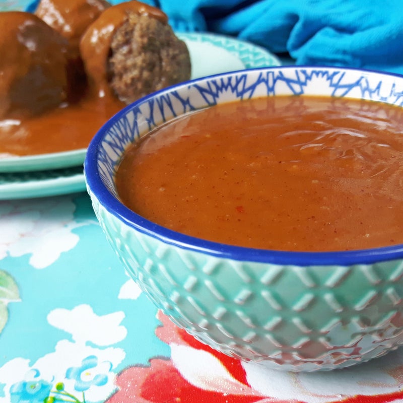 Pindasaus! Zo lekker, super simpel om zelf te maken & het kan bijna overal bij. Niet alleen bij deze gehaktballen, maar ook bij de nasi, bami & een patatje, of maak er saté mee...