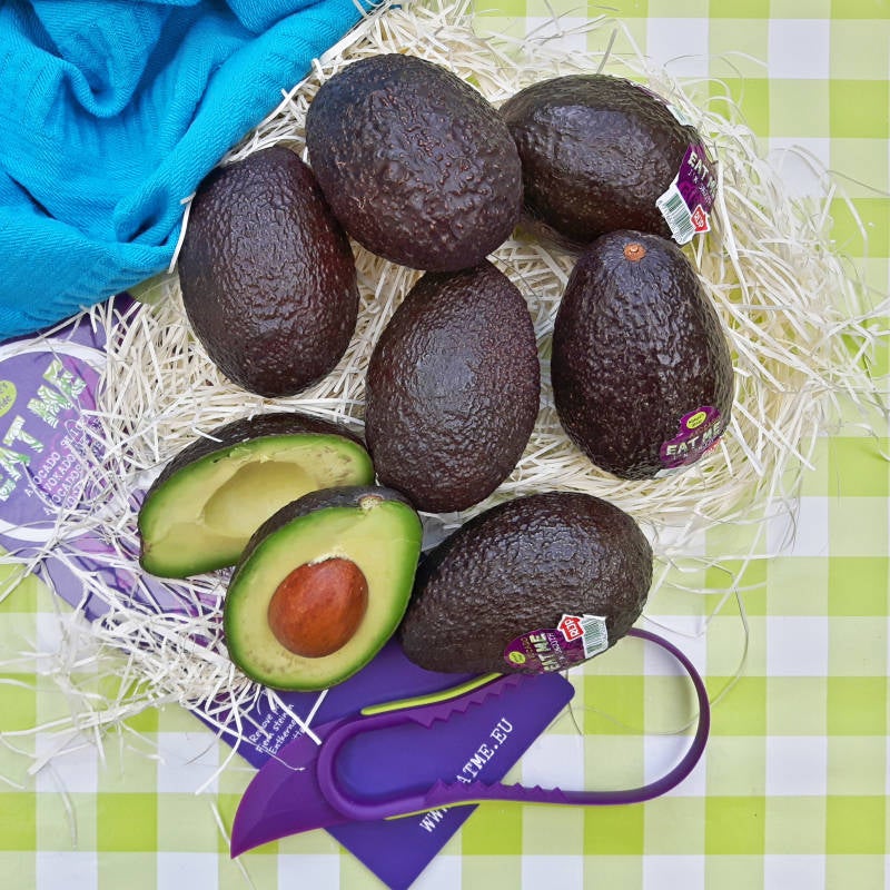 Bij de avocado's kreeg ik ook een avocado snijder. Die had ik nog nooit gezien, jullie wel? Best handig: je kunt 'm er mee door midden snijden en de pit er handig mee uit halen, en wat vooral goed werkt: het vruchtvlees er mee uit de schil lepelen. Een gewone lepel is daar meestal net wat te klein voor, maar met deze snijder lepel je in één keer alles er uit!